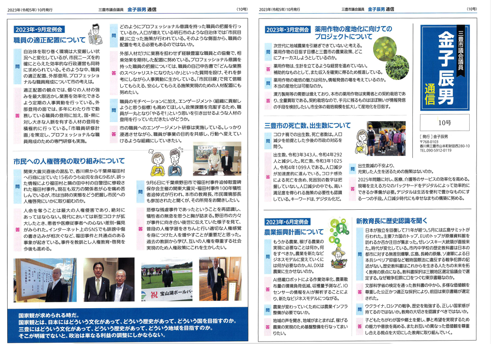 金子辰男通信11号を発刊いたしました。ぜひWEB版でもご覧く